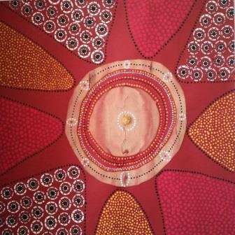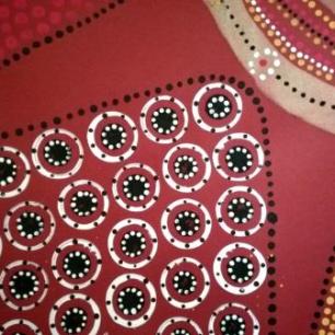 Dieses Bild ist vor Jahren im Rahmen der Sommerakademie in der Sammlung Essl, inspiriert von den Dot Paintings der Aborigines, entstanden. Es hängt mittlerweile über der Wickelkommode meiner Tochter und sie liebt das Bild 🙂