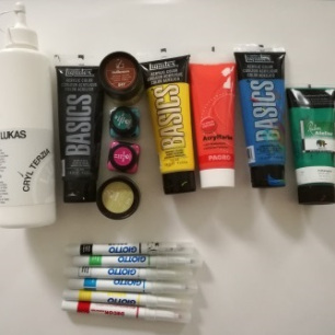 Acrylfarben, Plakafarben, oder Giotto Decor Stifte